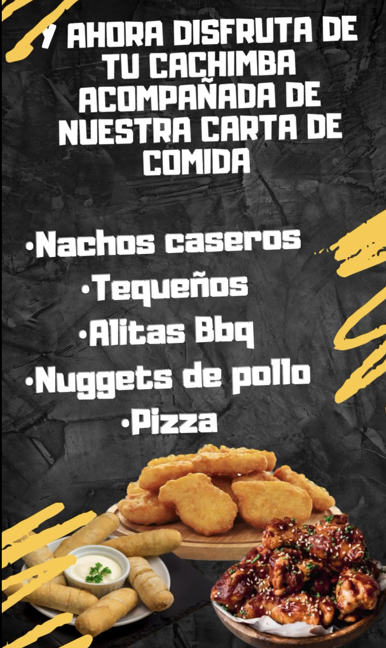 Nuestros nachos caseros están acompañados queso y deliciosa carne picada con frijoles que te chuparas los dedos.. |